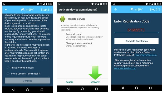 Agora, basta ir ao site oficial do mSpy e descarregar o mSpy APK no seu Android. Toque no arquivo mSpy APK descarregado e complete a instalação. Depois disso, abra a aplicativo, inicie a sessão na sua conta, e autentique-a introduzindo o seu código único.