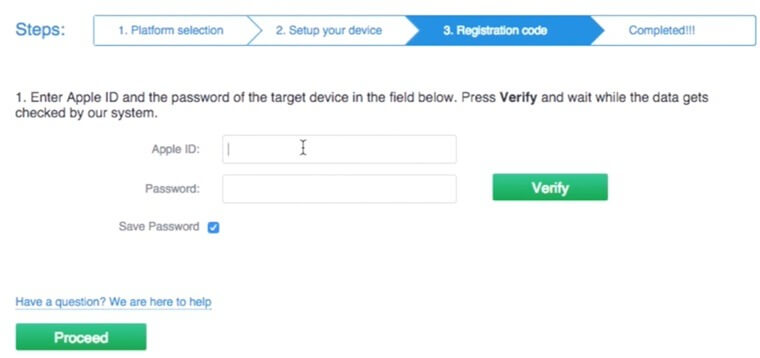 Uma vez selecionadas as versões do iPhone não quebradas durante a configuração da sua conta mSpy, obterá o seguinte ecrã. Basta iniciar sessão na mesma conta iCloud que já está ligada ao dispositivo alvo aqui. A aplicativo mSpy acederá automaticamente à cópia de segurança iCloud e às aplicações ligadas para lhe fornecer todos os detalhes vitais no seu painel de instrumentos.