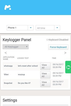 A aplicativo de controle parental vem também com um keylogger incorporado que registaria cada toque de tecla digitado no dispositivo. Isto permitir-lhe-á aceder às suas consultas pesquisadas e mesmo às suas mensagens eliminadas.
