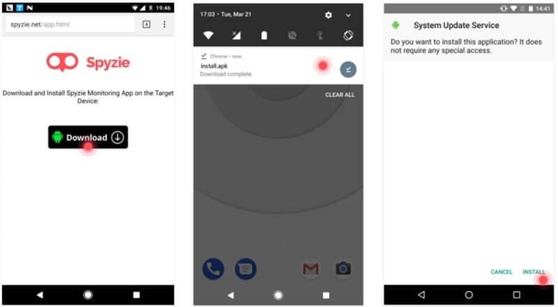 Depois disso, pode lançar qualquer navegador da web no telefone, ir ao sítio web do Spyzie e descarregar o seu arquivo APK no dispositivo. Toque no arquivo APK do Spyzie descarregado para completar a instalação.