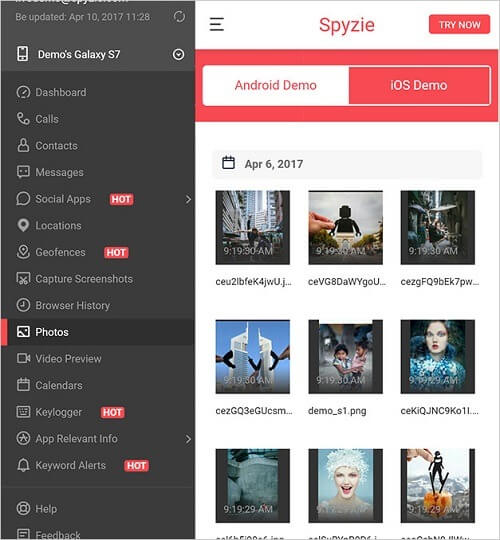 Além disso, há várias outras caraterísticas do localizador telefônico Spyzie que pode experimentar. Por exemplo, pode aceder a todas as fotografias e vídeos guardados no dispositivo, ver o histórico do seu navegador, notas, calendários, marcadores, contatos, e muito mais.